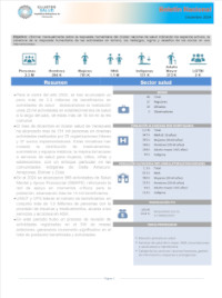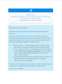 Boletines En este espacio compartimos contenidos vinculados al tema de la salud incluyendo datos y acciones relevantes de interés regional y nacional. Dic 2024 Boletín Cluster Salud a Diciembre 2024 Sep-Oct 2024 Boletín OCHA a Septiembre y Octubre 2024